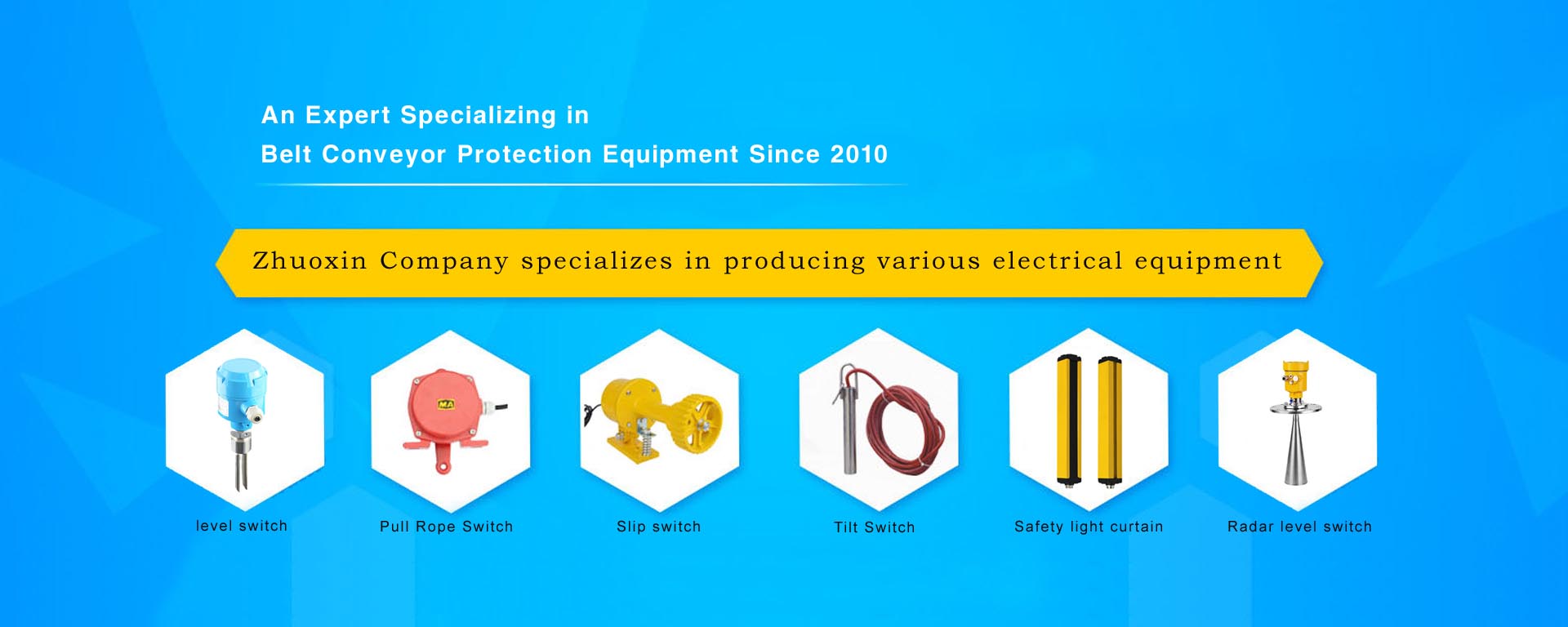 Shandong Zhuoxin Mechanical Equipment Co., Ltd. (formerly Jining Zhuoxin Electrical Factory) is a comprehensive company specializing in the production of deviation switches, pull rope switches, tilt switches, slip switches, underspeed switches, tear switches, blockage switches, sound and ...